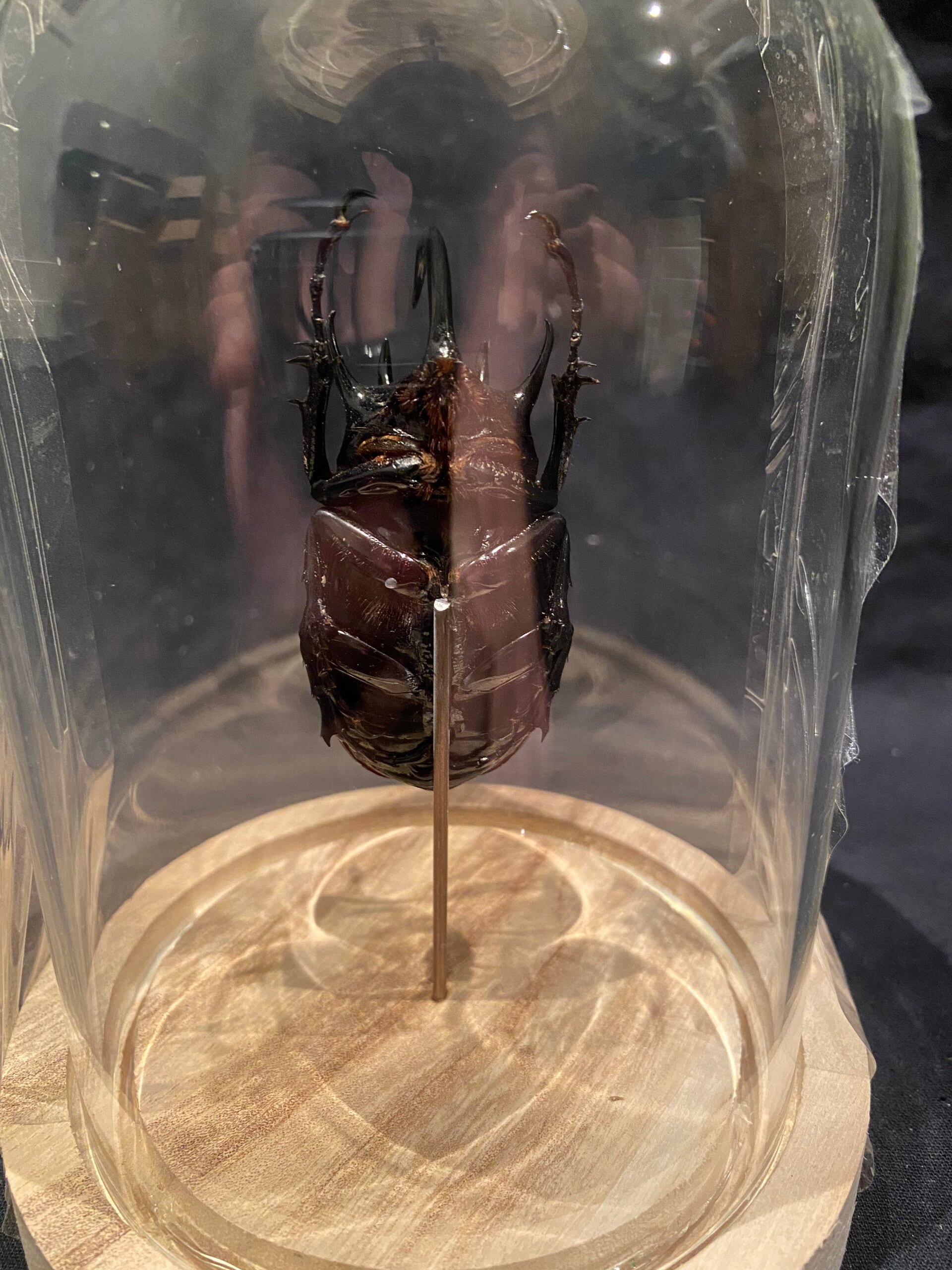 Hercules kever in stolp met licht (Eupatorus gracilicornis)