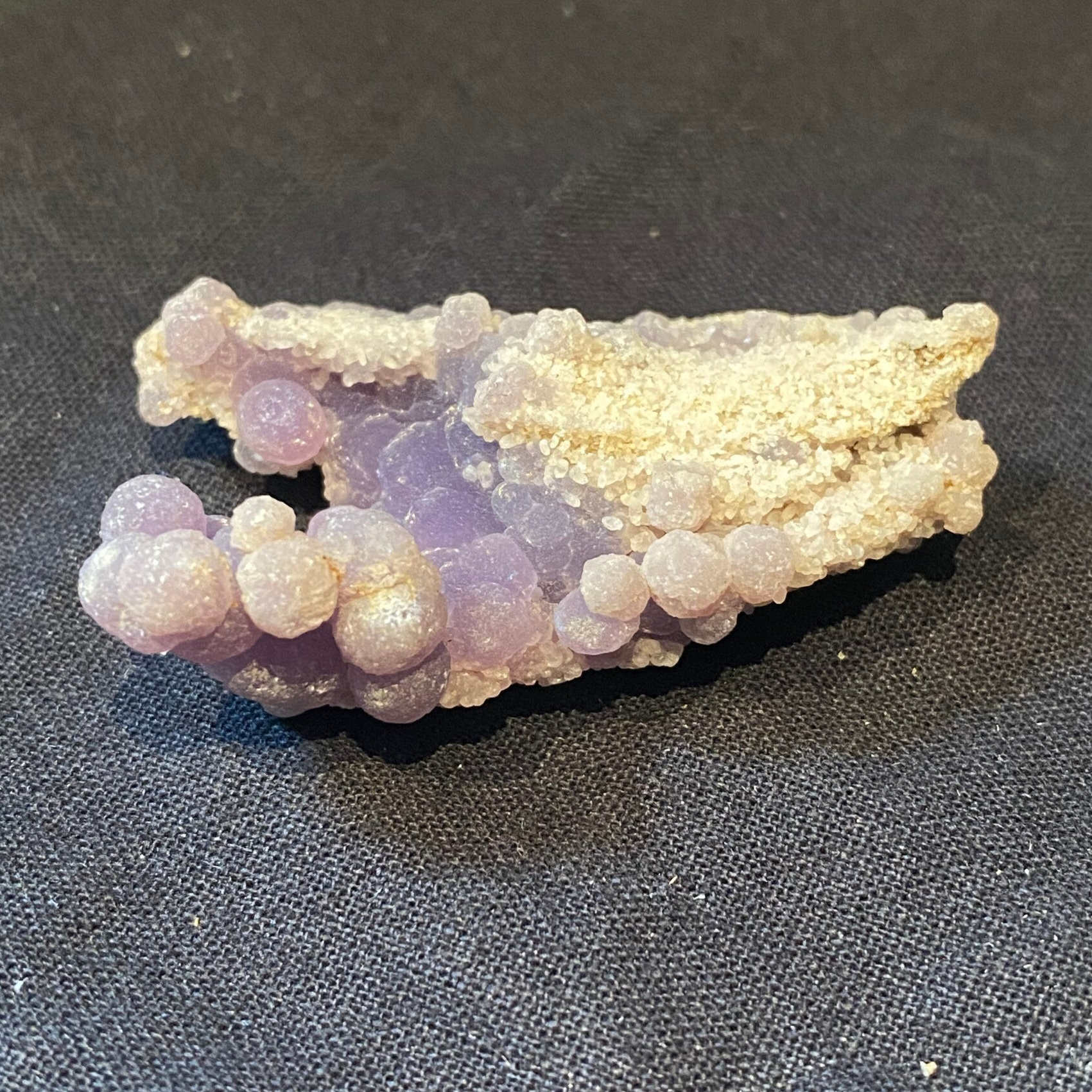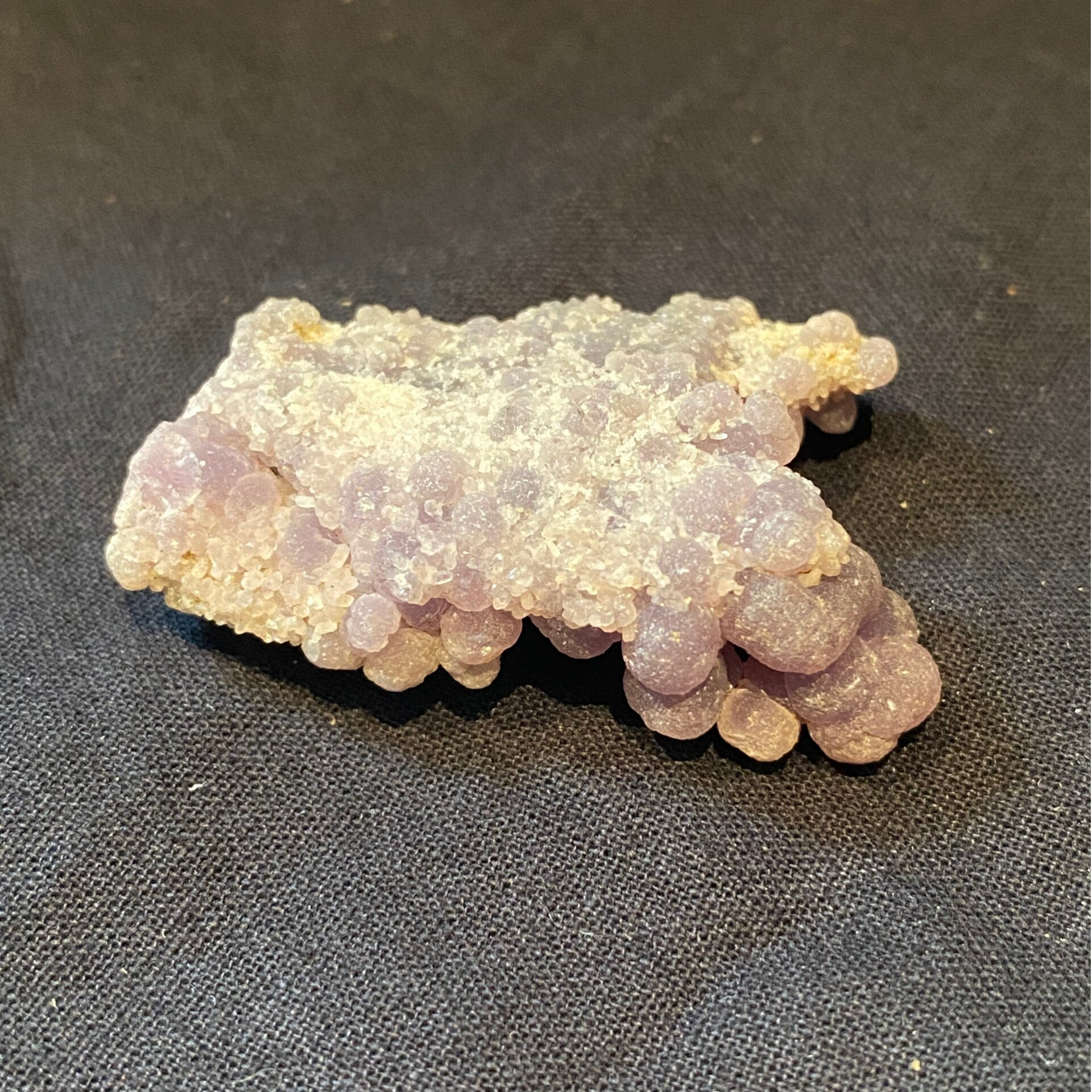 Druivenagaat is een zeldzame en unieke vorm van kwarts die zijn naam ontleent aan de opvallende gelijkenis met een tros druiven. Deze steen heeft bolvormige, ronde knobbeltjes die aan de oppervlakte lijken op kleine druiven, vaak in een paarse, groene of lavendelkleurige tint. Hier is wat belangrijke informatie over druivenagaat:
