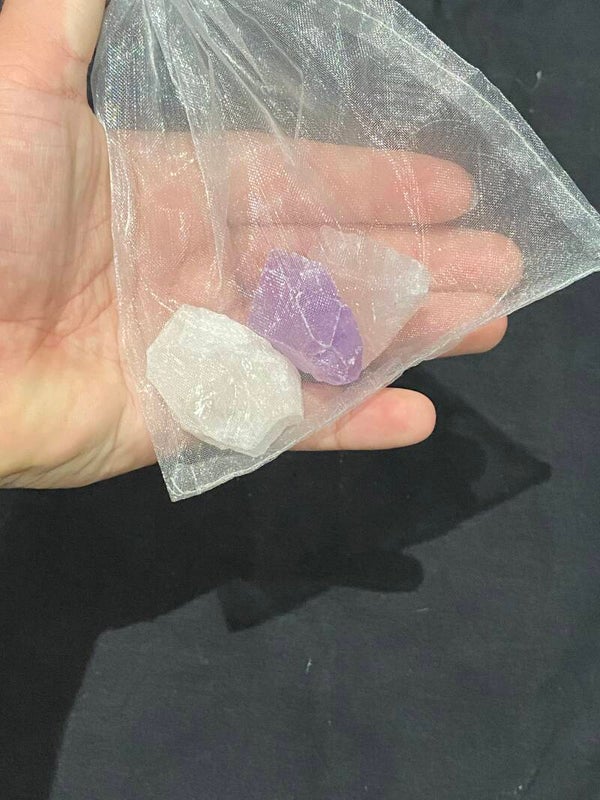 Wanneer amethist, bergkristal en rozenkwarts samen in de vorm van een driehoek worden geplaatst, versterken ze elkaars energieën en creëren ze een harmonieuze en gebalanceerde energieveld. De drie stenen samen helpen om: