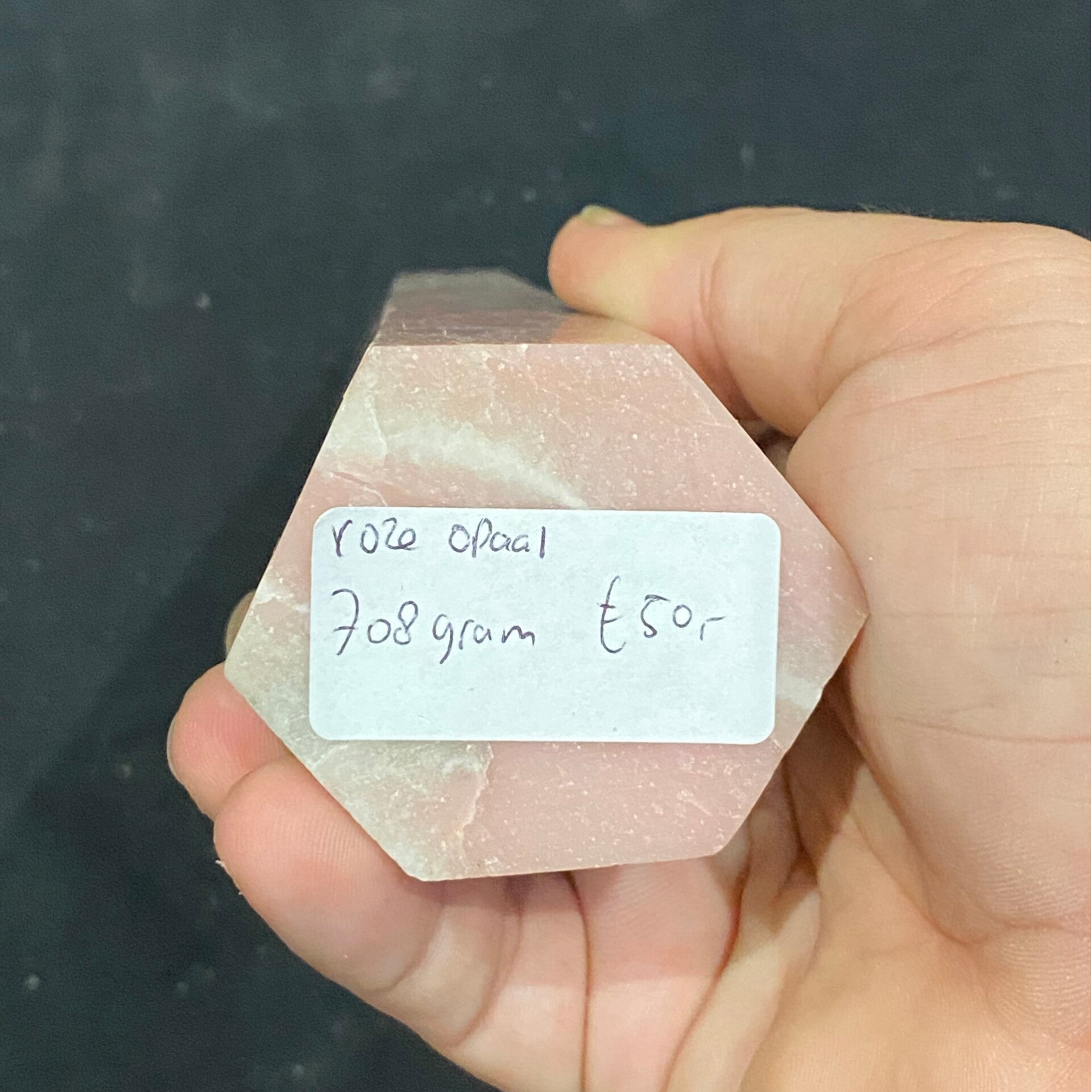 Roze opaal is een variëteit van opaal die voornamelijk voorkomt in een zachte, roze kleur. Het staat bekend om zijn kalmerende energie en wordt vaak geassocieerd met het hartchakra, wat helpt bij emotionele heling en liefde. Roze opaal heeft een delicate, melkachtige of doorschijnende uitstraling en wordt gewaardeerd in zowel sieraden als spiritueel werk.