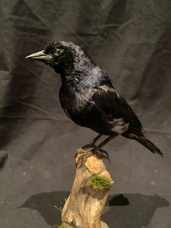 De Glanskoevogel heeft een vrij onopvallend uiterlijk dat sterk varieert afhankelijk van het geslacht en de leeftijd. Over het algemeen heeft de mannelijke Glanskoevogel een zwarte kleur met een lichtbruine tot olijfgroene onderkant. De vrouw is vaak lichter en heeft een bruinachtige kleur met grijsbruine strepen op de rug en de vleugels. Dit kleed helpt de vrouwelijke vogels goed te camoufleren, vooral tijdens het broedseizoen wanneer ze mogelijk in de buurt van andere vogelsoorten nestelen.