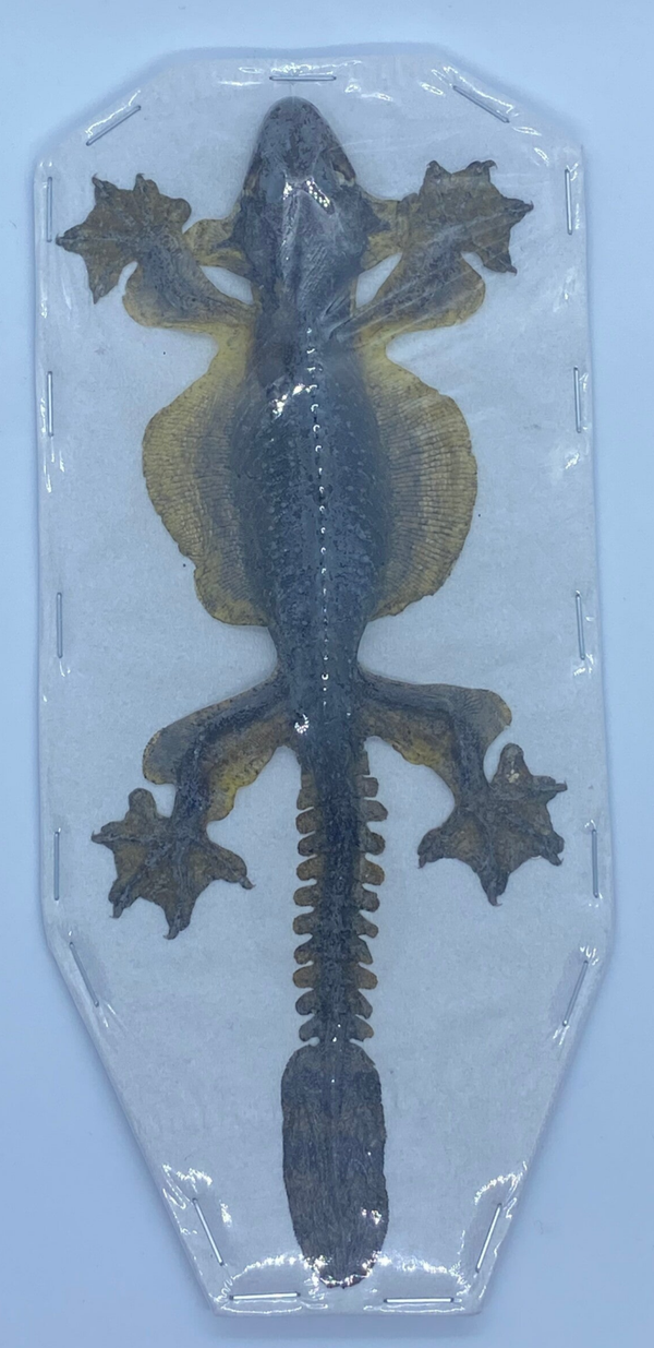 Bijzonderheden: Vleugelachtige huidflappen voor zweven; uitstekende camouflage; zeldzaam in collecties