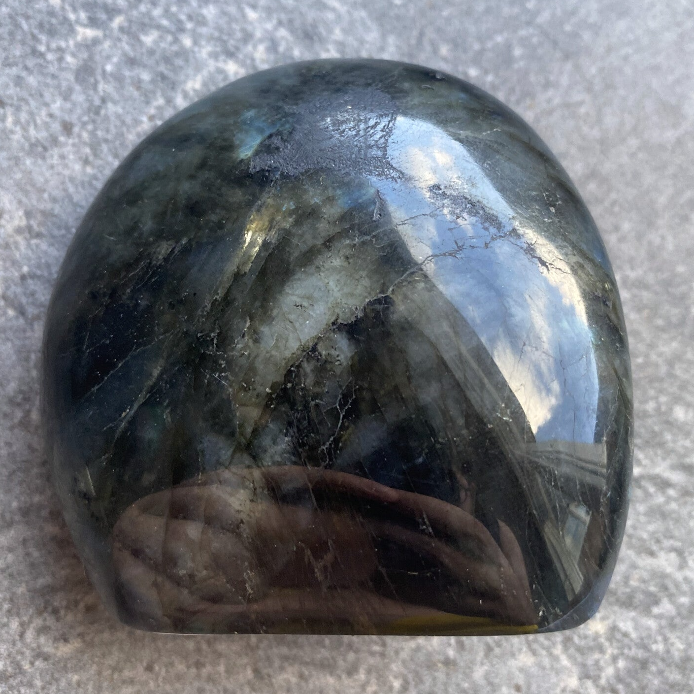 Hardheid: Labradoriet heeft een hardheid van ongeveer 6 tot 6,5 op de schaal van Mohs, wat betekent dat het redelijk hard is maar wel voorzichtig moet worden behandeld om krassen te voorkomen.