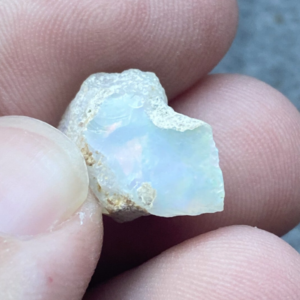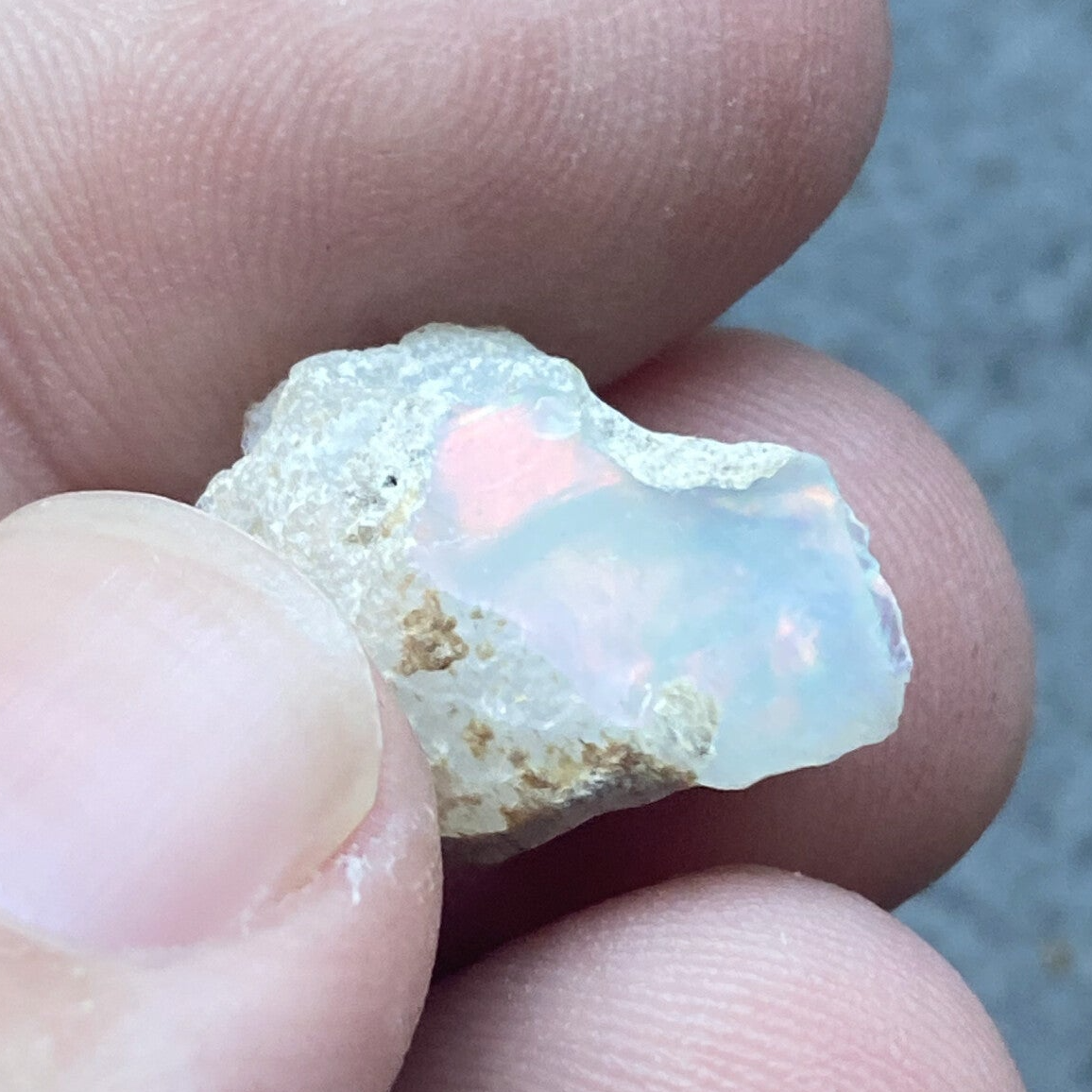 Ruwe Ethiopische opaal is beroemd om zijn levendige spel van kleuren, ook wel opalescentie genoemd. De steen kan doorschijnend tot transparant zijn, met tinten variërend van wit, honingkleurig en oranje tot helder blauwgroen. Wanneer het licht erover valt, vertoont de opaal schitterende flitsen van regenboogkleuren — rood, groen, blauw en paars. Ethiopische opaal wordt vaak gevonden in een ruwe, onregelmatige vorm met een harsachtige glans.