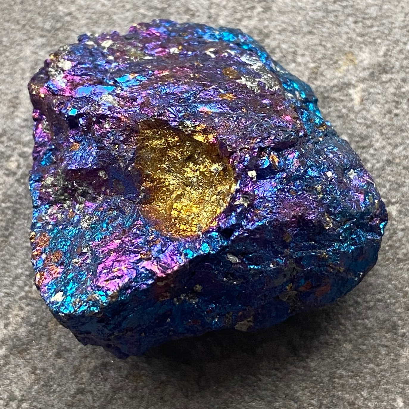 De spectaculaire regenboogkleuren van borniet ontstaan niet door kleurstof, maar door oxidatie van het koper aan het oppervlak. Deze natuurlijke reactie met zuurstof geeft borniet zijn kenmerkende iriserende uiterlijk, vergelijkbaar met het effect van olie op water.