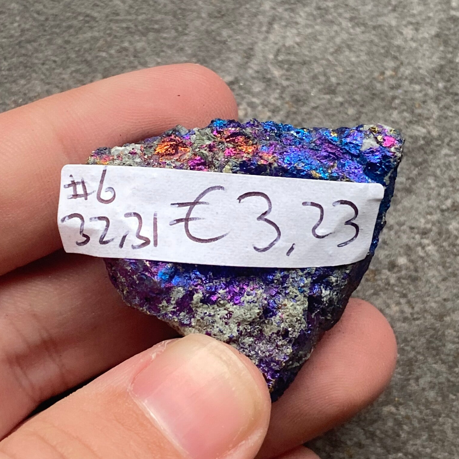 De spectaculaire regenboogkleuren van borniet ontstaan niet door kleurstof, maar door oxidatie van het koper aan het oppervlak. Deze natuurlijke reactie met zuurstof geeft borniet zijn kenmerkende iriserende uiterlijk, vergelijkbaar met het effect van olie op water.