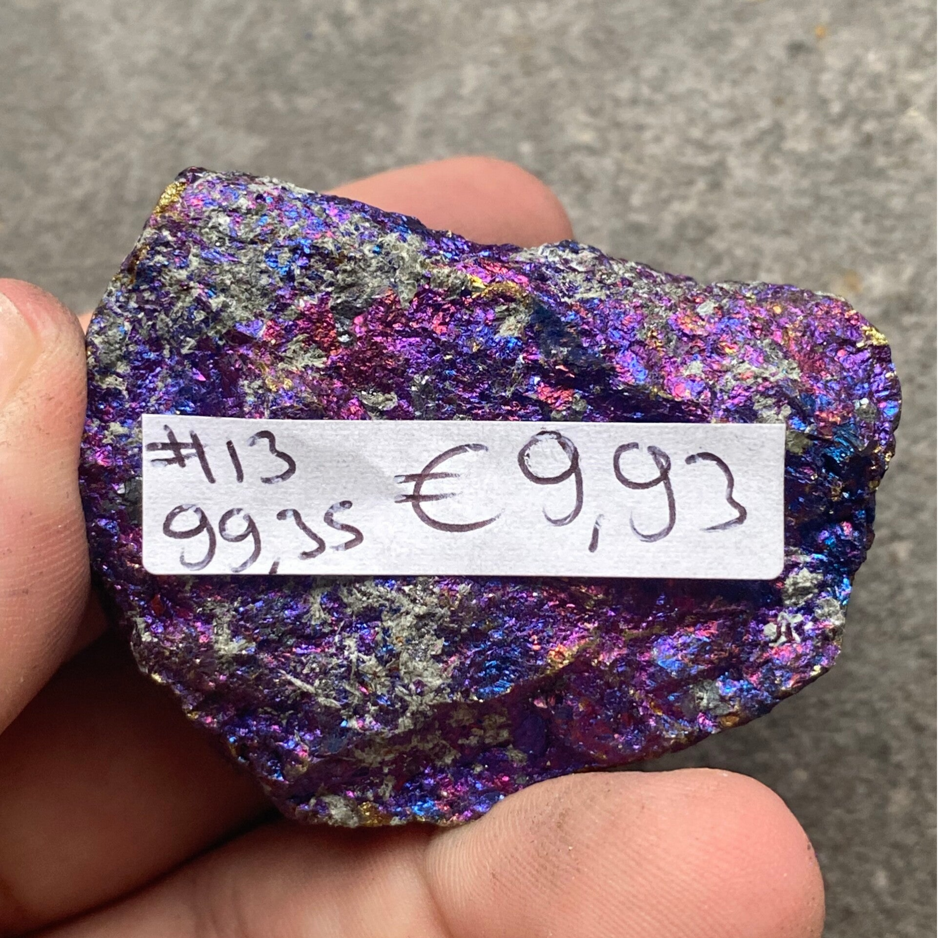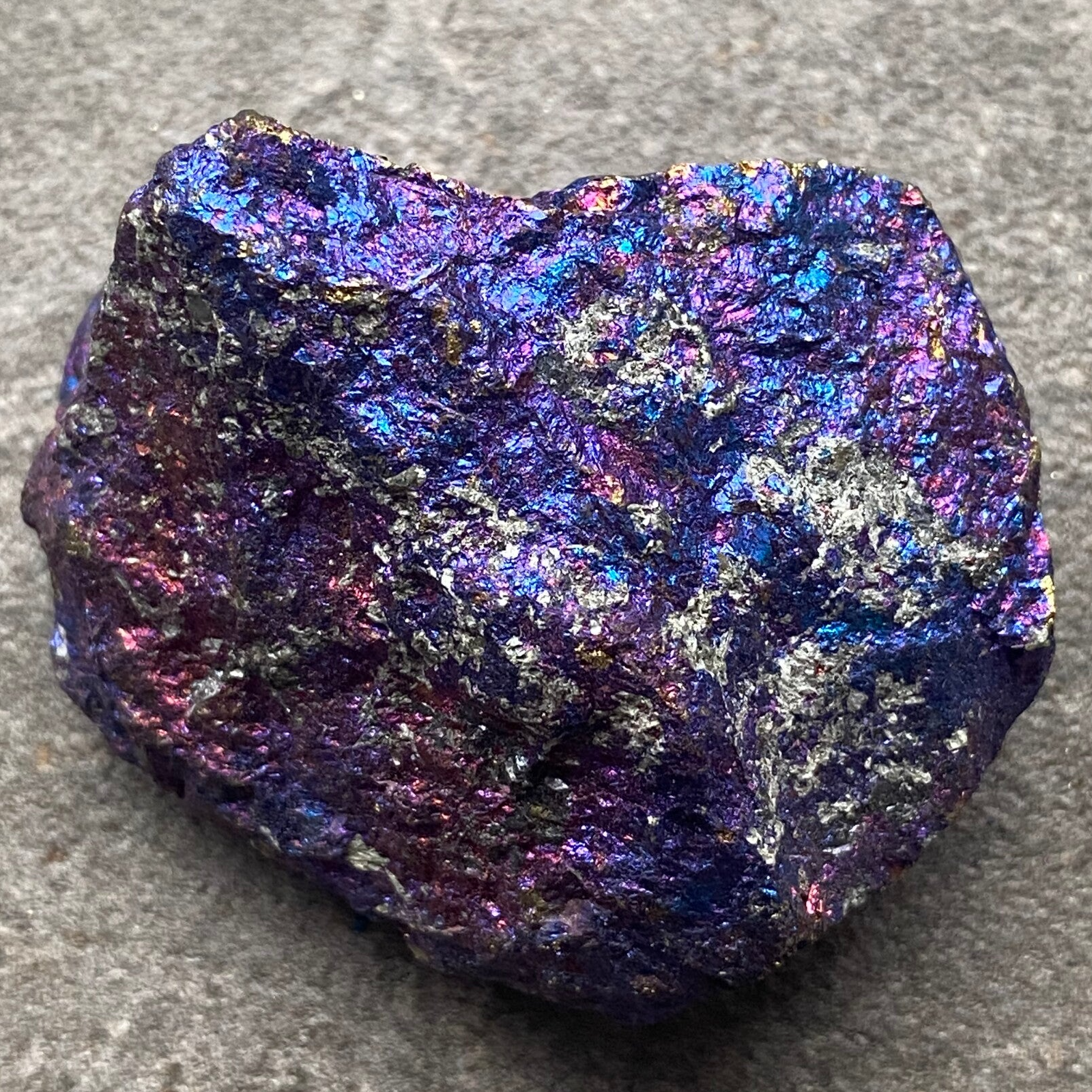 De spectaculaire regenboogkleuren van borniet ontstaan niet door kleurstof, maar door oxidatie van het koper aan het oppervlak. Deze natuurlijke reactie met zuurstof geeft borniet zijn kenmerkende iriserende uiterlijk, vergelijkbaar met het effect van olie op water.