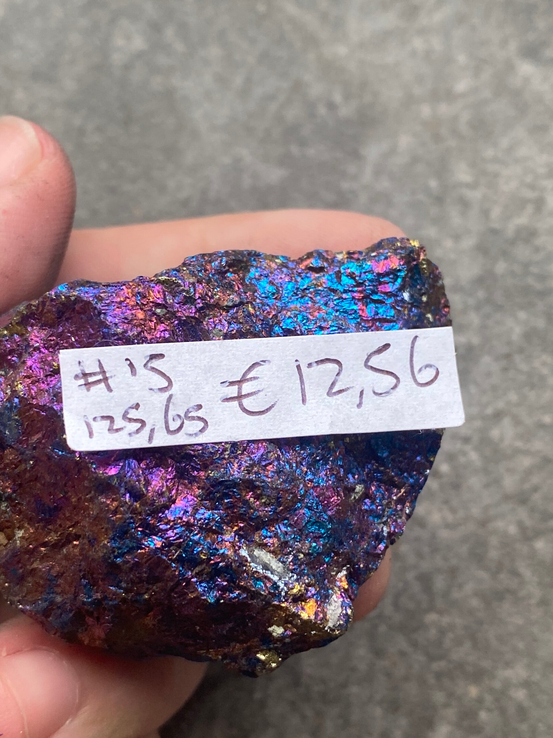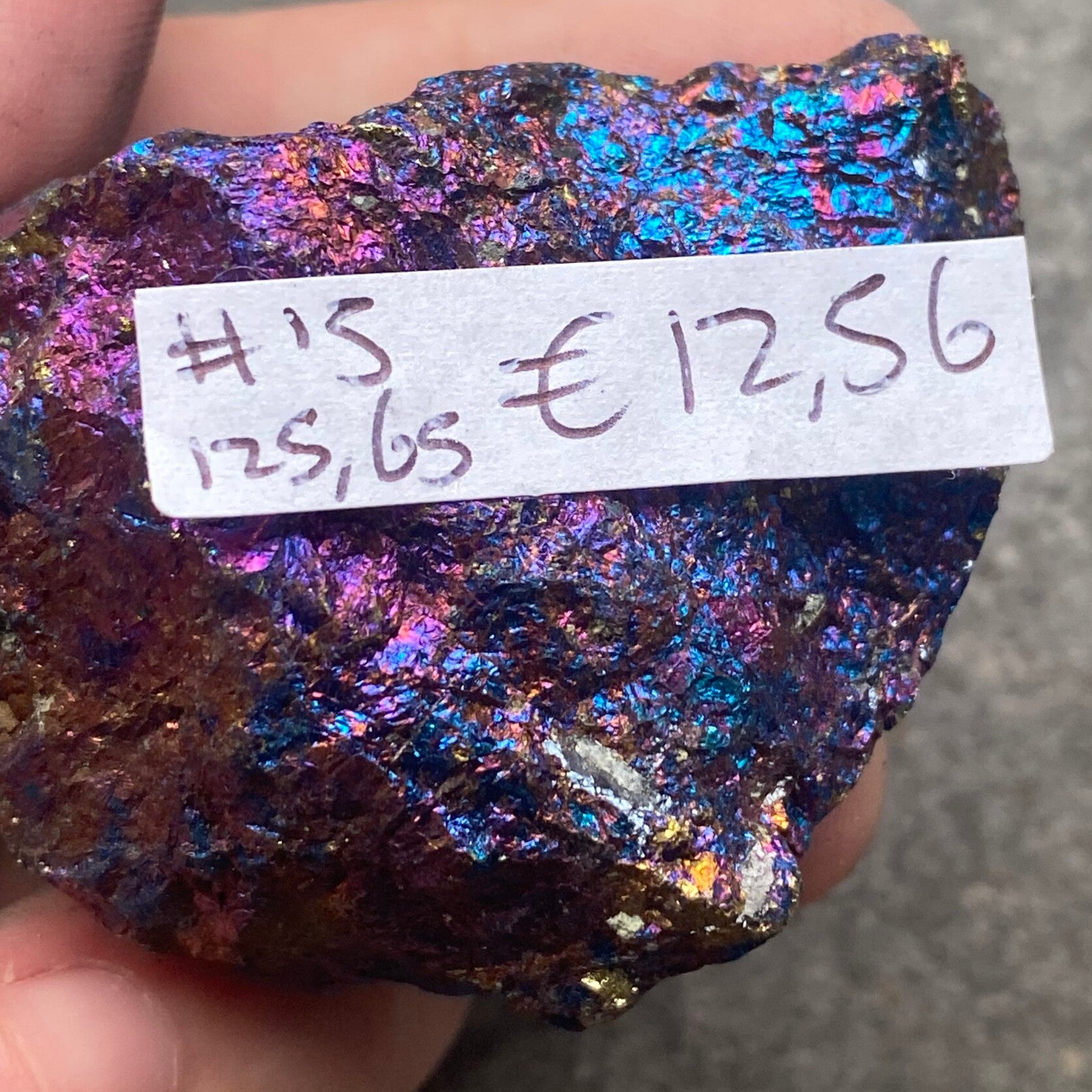 De spectaculaire regenboogkleuren van borniet ontstaan niet door kleurstof, maar door oxidatie van het koper aan het oppervlak. Deze natuurlijke reactie met zuurstof geeft borniet zijn kenmerkende iriserende uiterlijk, vergelijkbaar met het effect van olie op water.
