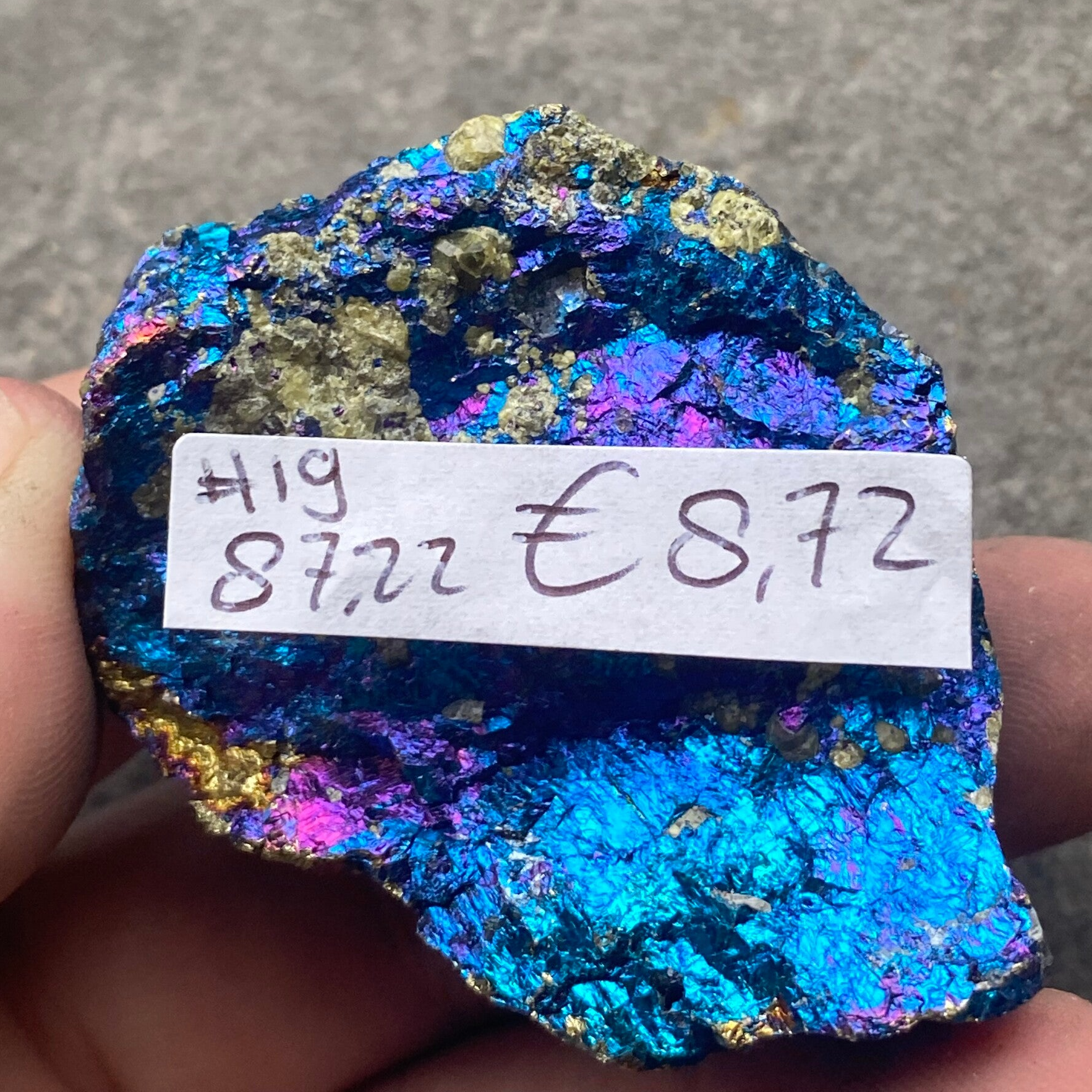 De spectaculaire regenboogkleuren van borniet ontstaan niet door kleurstof, maar door oxidatie van het koper aan het oppervlak. Deze natuurlijke reactie met zuurstof geeft borniet zijn kenmerkende iriserende uiterlijk, vergelijkbaar met het effect van olie op water.