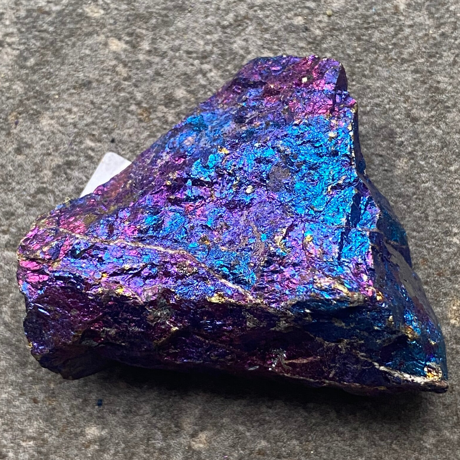 De spectaculaire regenboogkleuren van borniet ontstaan niet door kleurstof, maar door oxidatie van het koper aan het oppervlak. Deze natuurlijke reactie met zuurstof geeft borniet zijn kenmerkende iriserende uiterlijk, vergelijkbaar met het effect van olie op water.