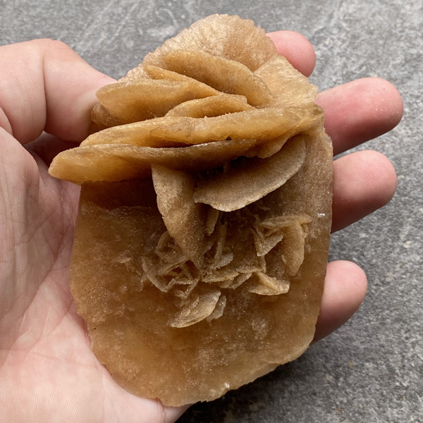 Woestijnroos (ook wel zandroos of selenietroos) heeft een zandkleurige tot lichtbruine tint, soms met een crème- of roestkleurige gloed. Het bestaat uit rozetvormige kristallen die op natuurlijke bloemen lijken. De kristallen kunnen fijne zandkorrels bevatten, waardoor het oppervlak een licht ruwe structuur heeft.
