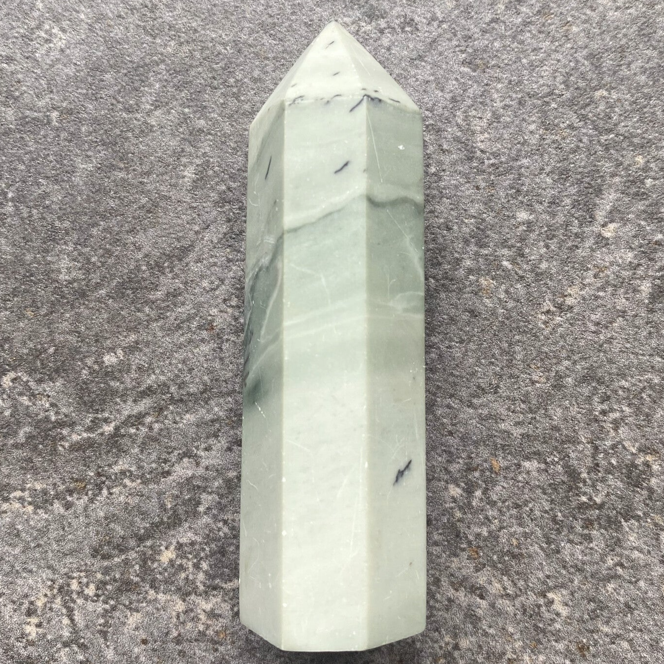 De naam “sage jasper” verwijst vaak naar het grijsgroene, kruidachtige uiterlijk dat aan salie doet denken.