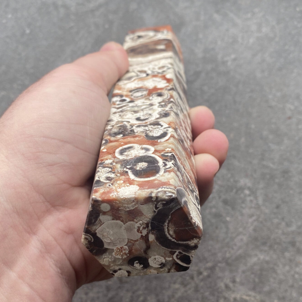 Elke steen is uniek door de natuurlijke banding en insluitsels, waardoor geen twee exemplaren hetzelfde zijn.