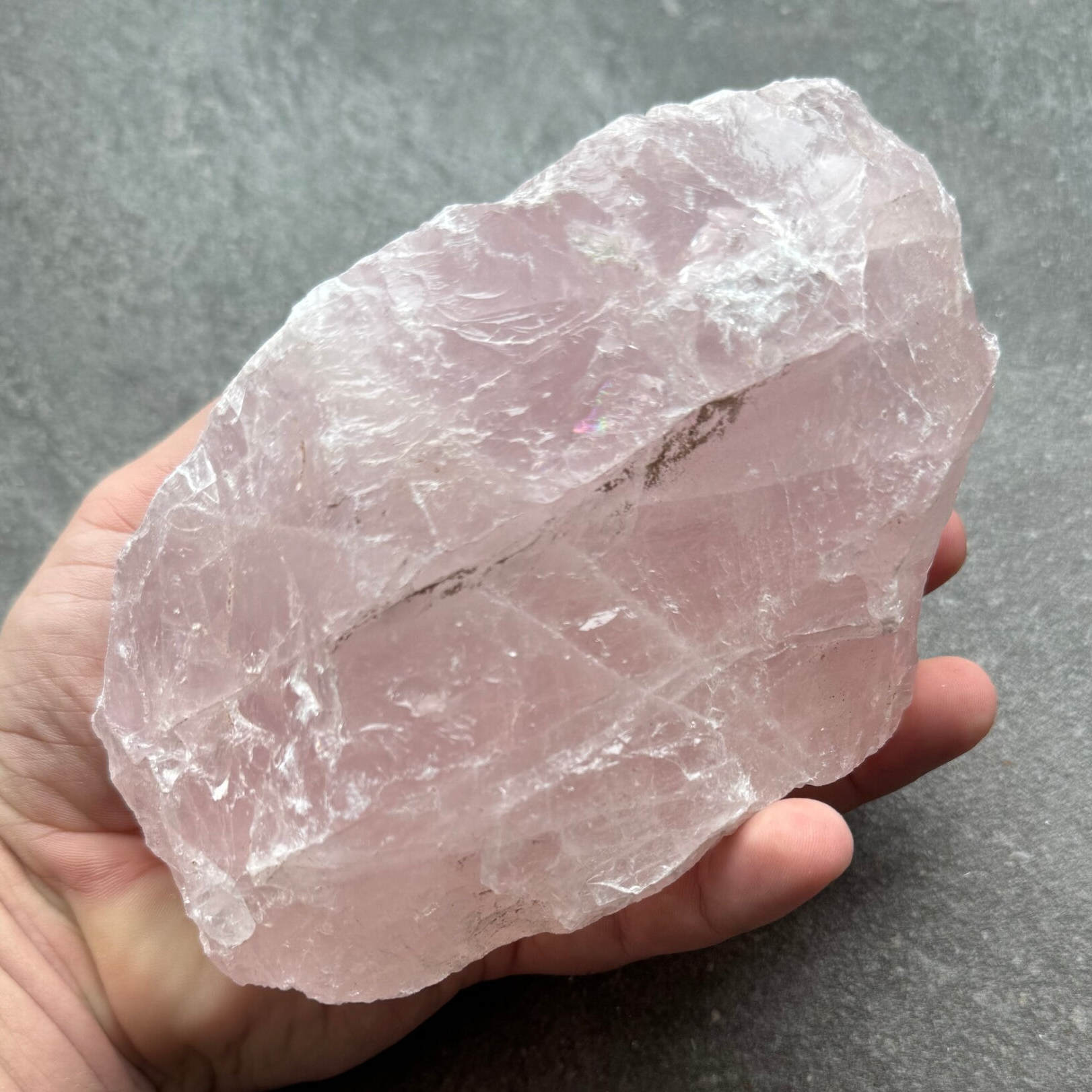 Kleur en uiterlijk: Rozenkwarts heeft een delicate roze tot lichtroze kleur. Het varieert van bijna transparant tot ondoorzichtig en kan soms kleine insluitsels van andere mineralen bevatten.