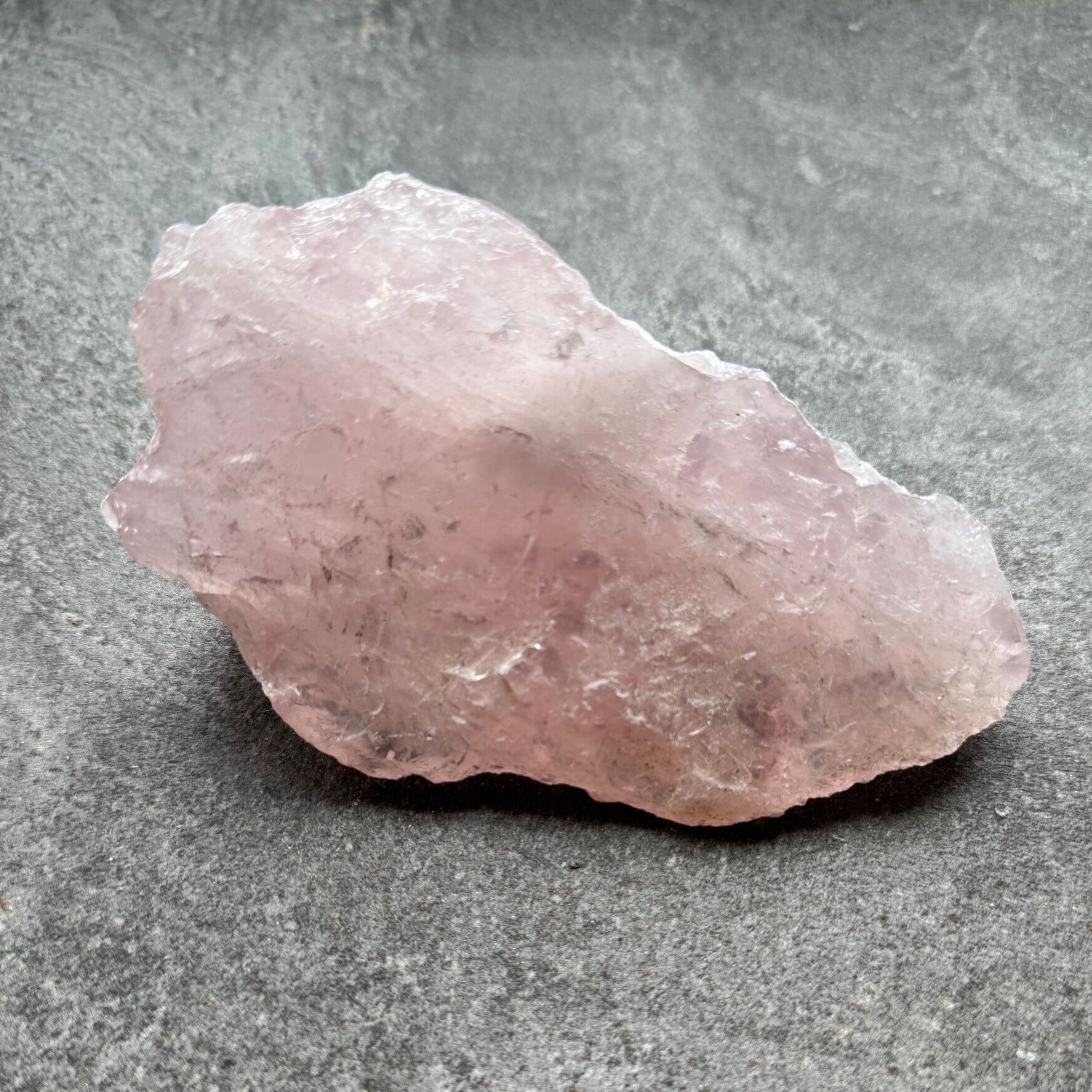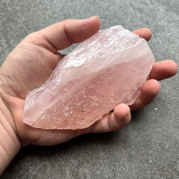Kleur en uiterlijk: Rozenkwarts heeft een delicate roze tot lichtroze kleur. Het varieert van bijna transparant tot ondoorzichtig en kan soms kleine insluitsels van andere mineralen bevatten.