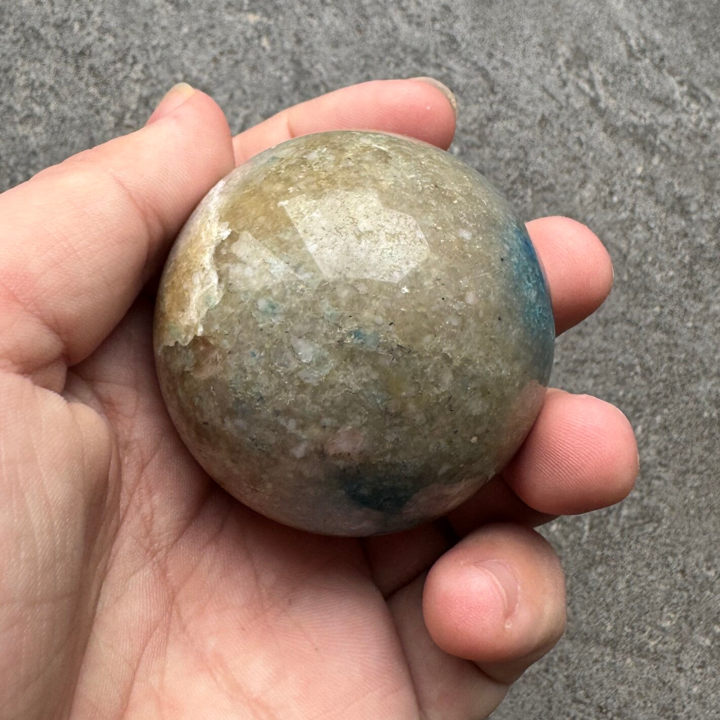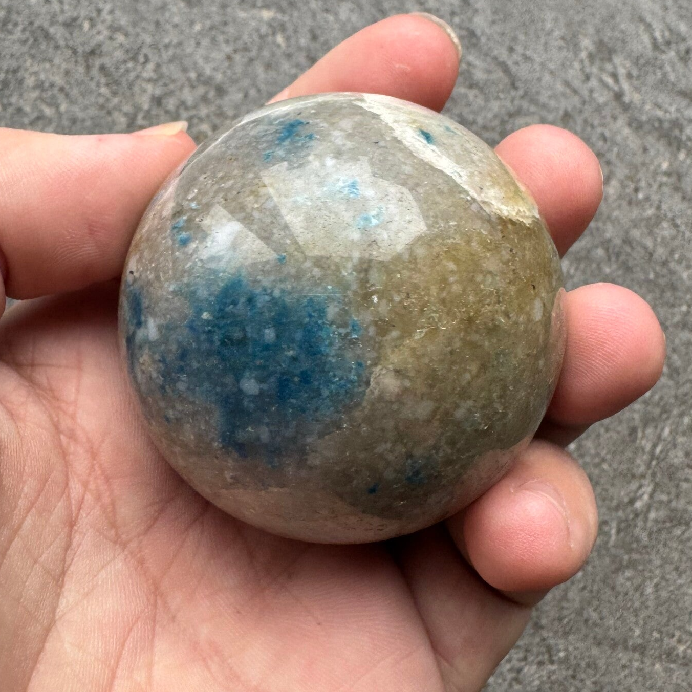 Door het opvallende contrast tussen het grijze gesteente en de blauwe azurietvlekken is K2 een zeer herkenbare en geliefde steen.