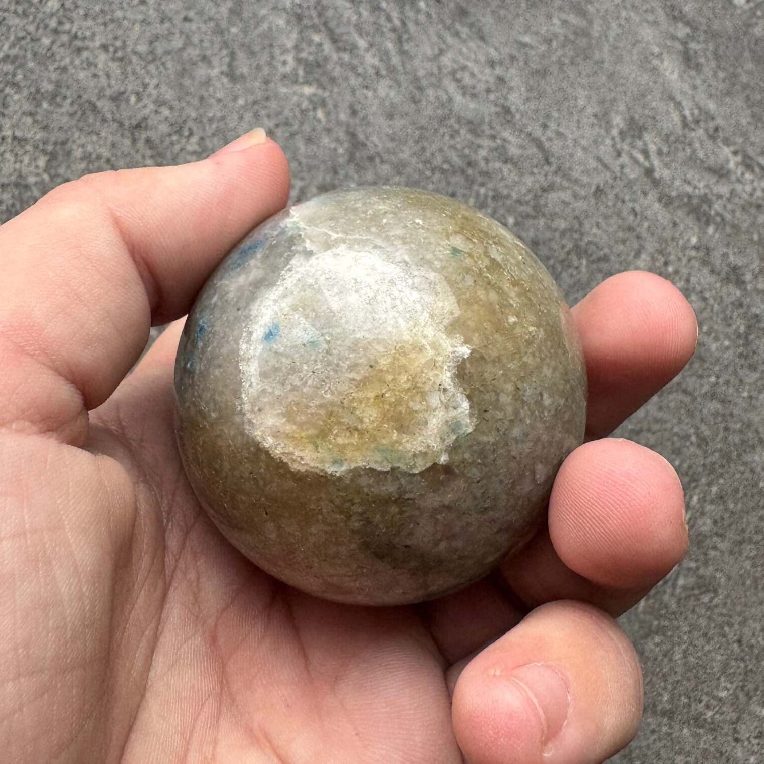K2 steen heeft een lichtgrijze tot witte basis met opvallende helderblauwe stippen of vlekken. Deze blauwe vlekken bestaan uit azuriet en steken sterk af tegen het granietachtige gesteente. Het patroon lijkt vaak op blauwe verfspatten op een lichte achtergrond.